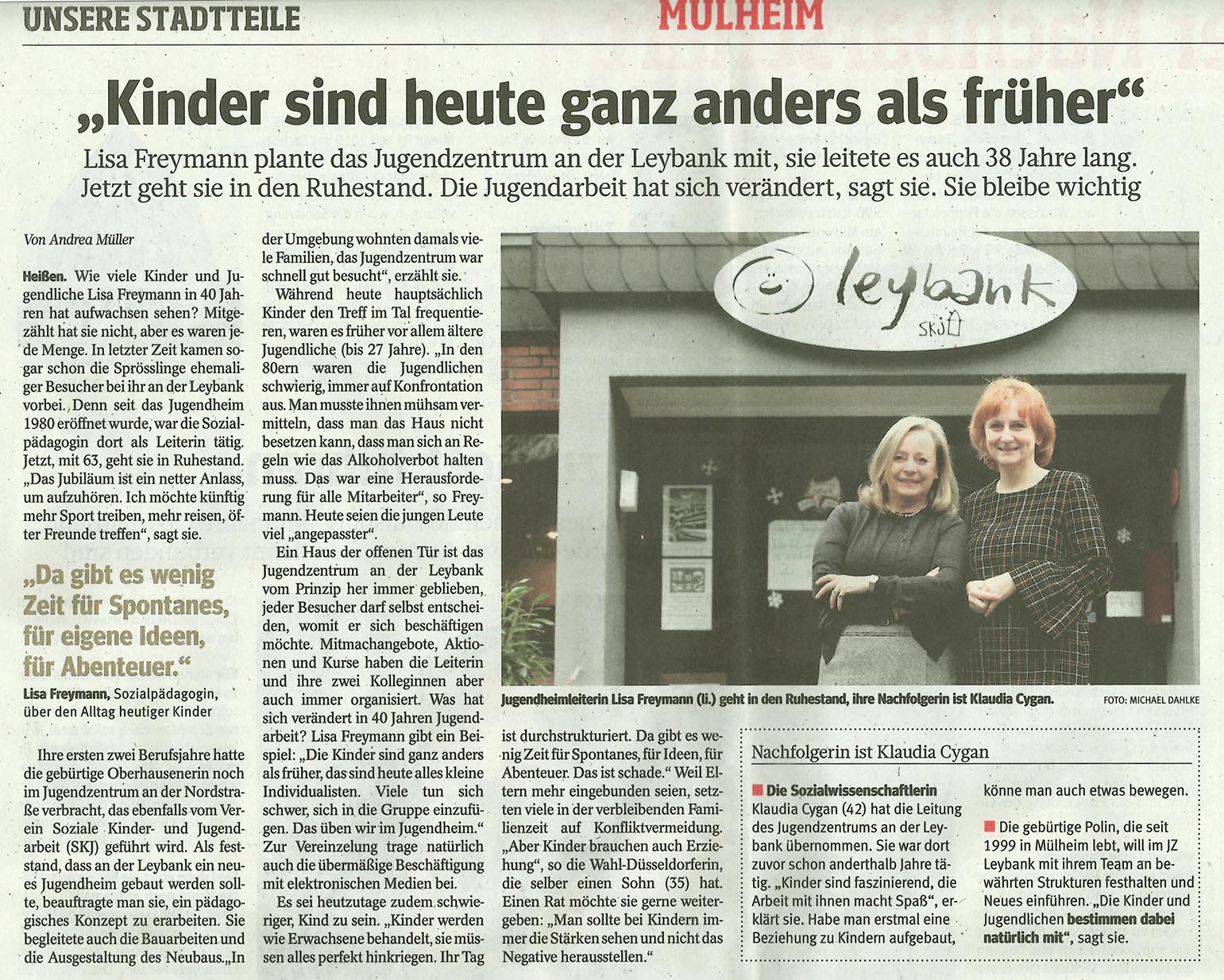 Presseveröffentlichungen über das Jugendzentrum Leybank findet Ihr unten stehend.